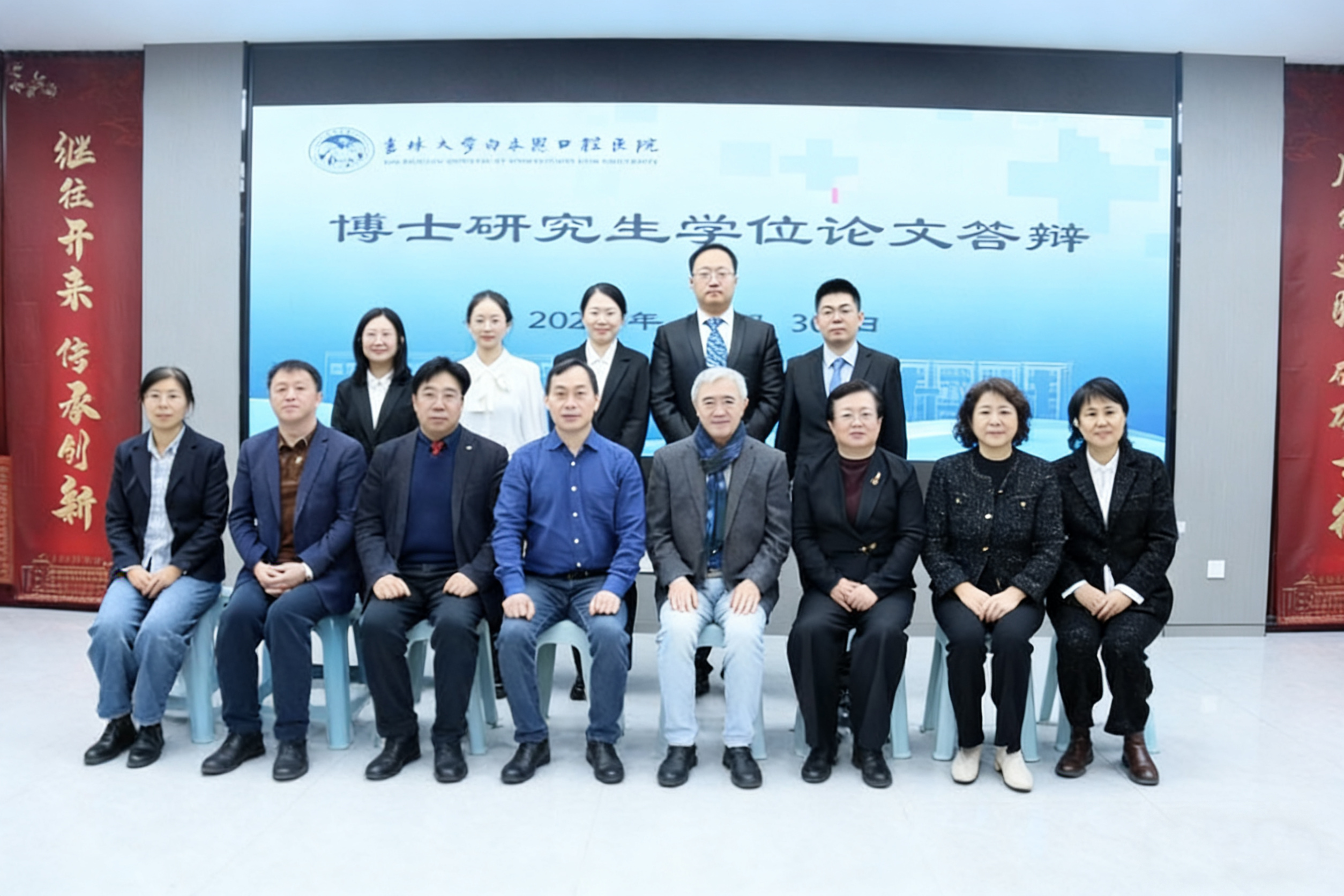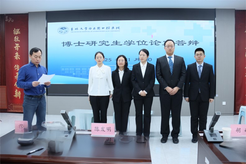 本次答辩我院特邀国内知名专家:空军军医大学陈发明教授、武汉大学陈智教授担任校外评委。校内评委由吉林大学白求恩口腔医学院胡敏教授、刘志辉教授、孙宏晨教授、韩冰教授、刘敏教授、史册教授担任。经答辩委员会推选,陈发明教授担任答辩委员会主席。
