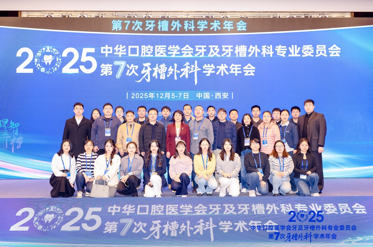 2025年12月5日至7日,由中华口腔医学会牙及牙槽外科专业委员会主办、西安交通大学口腔医院承办的“中华口腔医学会牙及牙槽外科专业委员会第7次全国牙槽外科学术年会”在西安隆重召开。我院由中华口腔医学会牙及牙槽外科专业委员会副主任委员、吉林省口腔医学会牙及牙槽外科专业委员会主任委员、口腔颌面外二科主任韩冰教授带队,一行32名医护人员及学生参加了此次学术盛会。