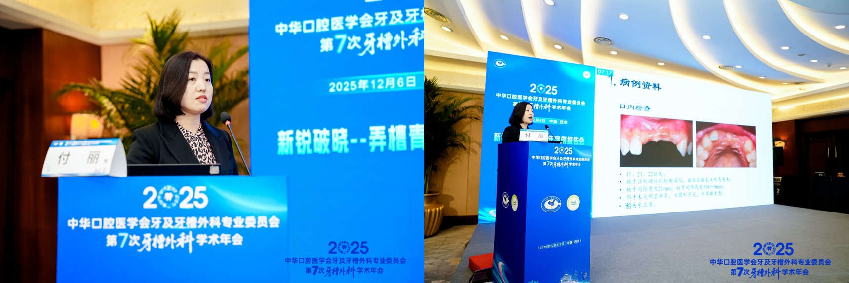 口腔种植科付丽副教授分享了《3D打印个性化钛网骨增量用于美学区连续缺失牙种植修复1例》,展示了数字化技术在美学与功能修复中的应用价值。