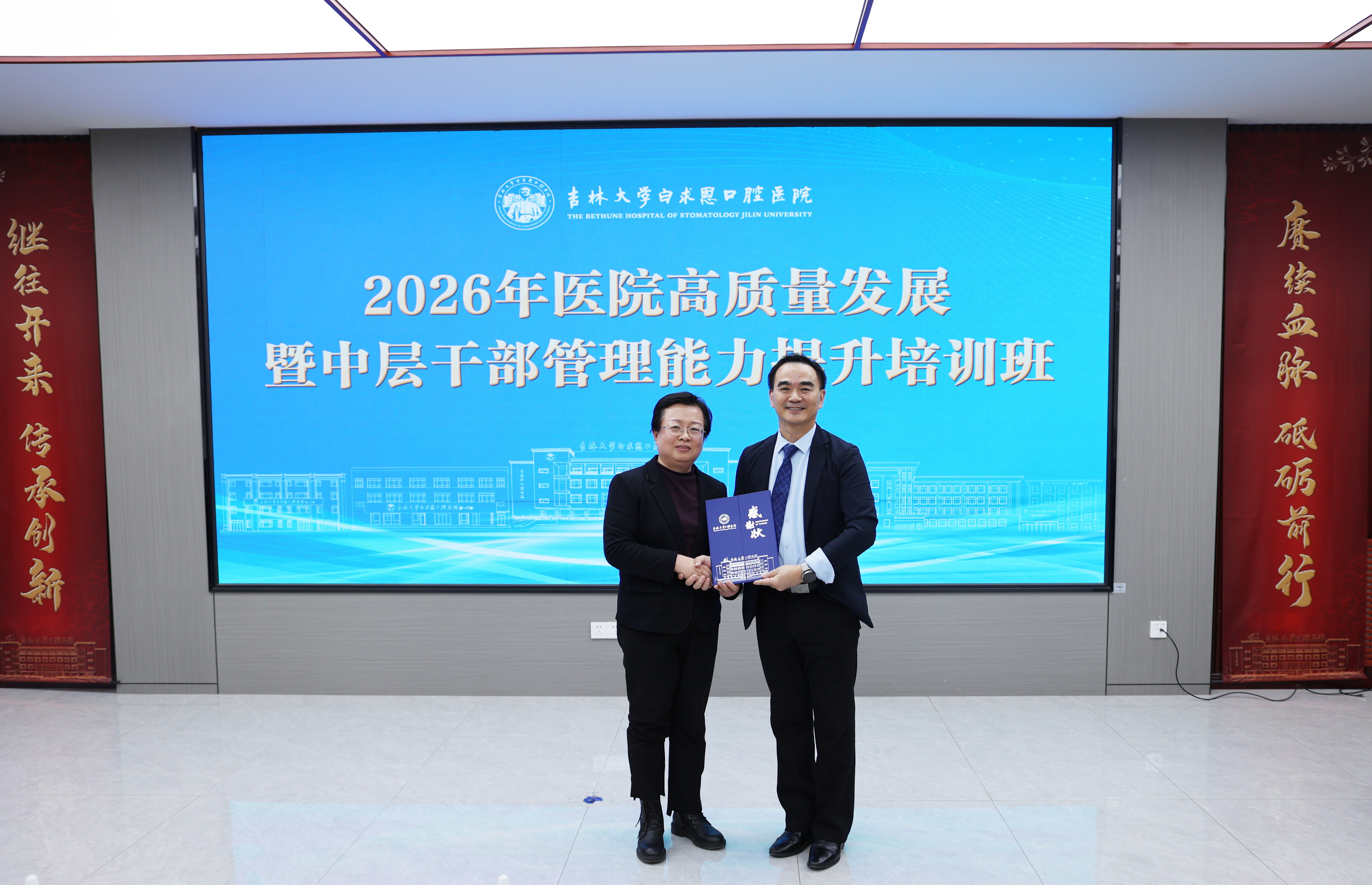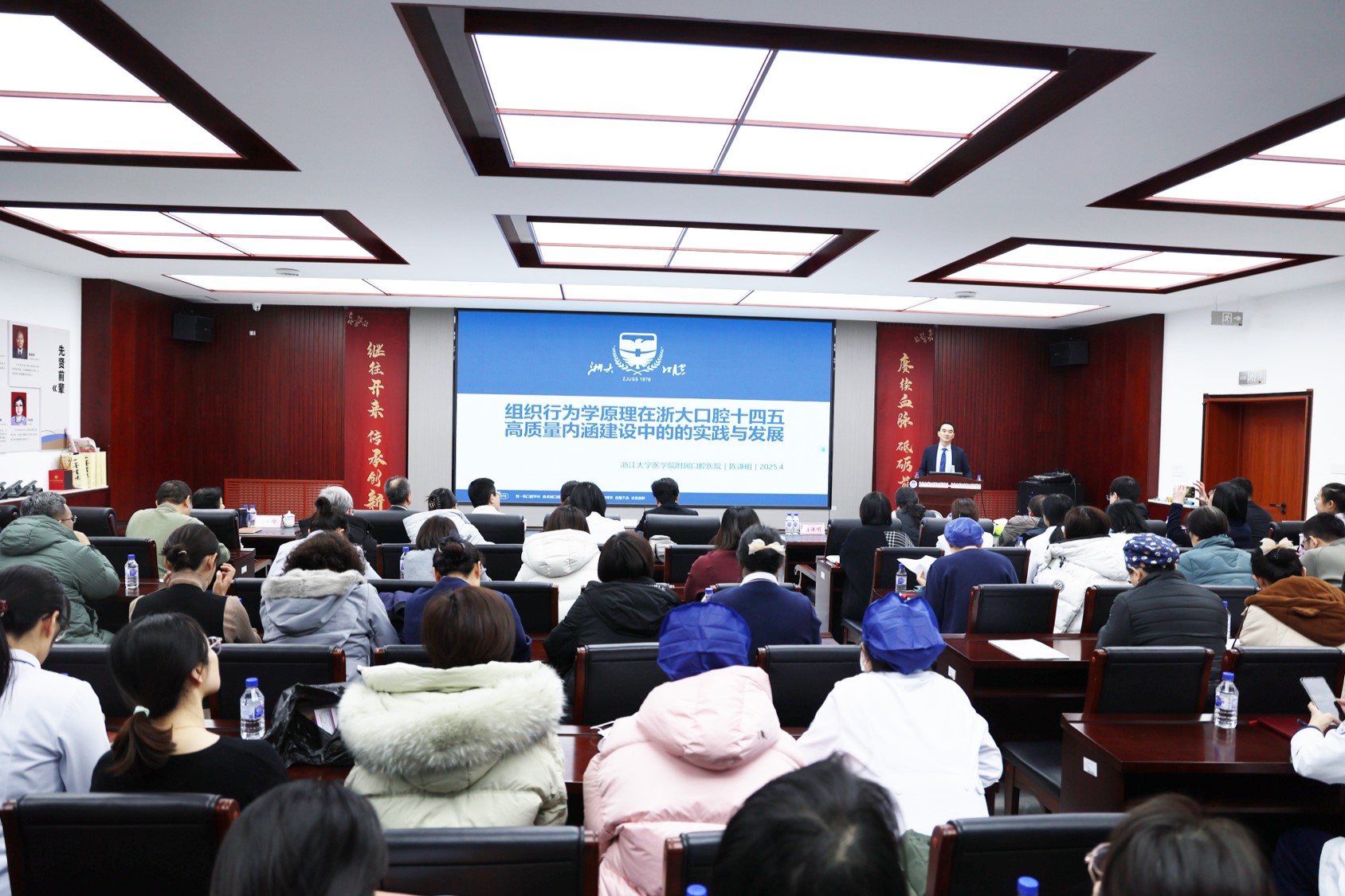 为提升中层干部管理能力,推动医院高质量发展,1月16日,我院举办2026年医院高质量发展暨中层干部管理能力提升培训班。特别邀请浙江大学医学院附属口腔医院陈谦明教授来院作题为《组织行为学原理在浙大口腔十四五高质量内涵建设中的实践和发展》专题报告。全体院领导、党支部书记、中层干部参加会议。会议由党委书记胡敏主持。