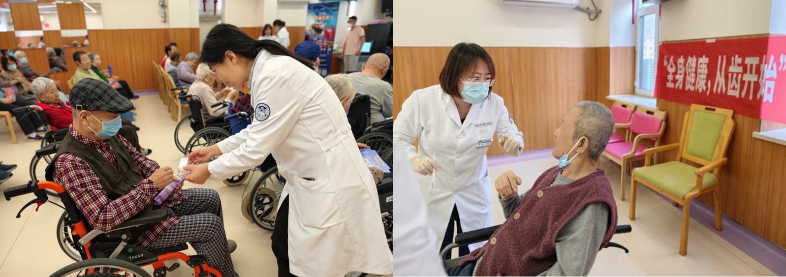 我院职工第七党支部代表:口腔病理科主任史册、医学影像科主任蔡研积极参与活动,与老人们亲切交流、送上关怀,充分彰显了党员的责任与担当。志愿服务团队为老人们准备了护牙纪念品和口腔健康宣教单,让大家在温馨氛围中便捷学习护齿知识。