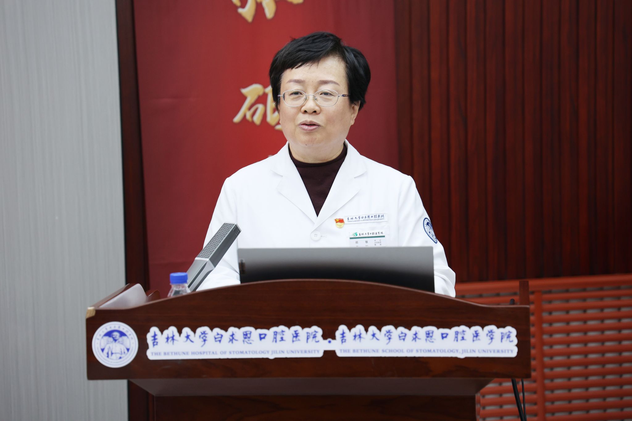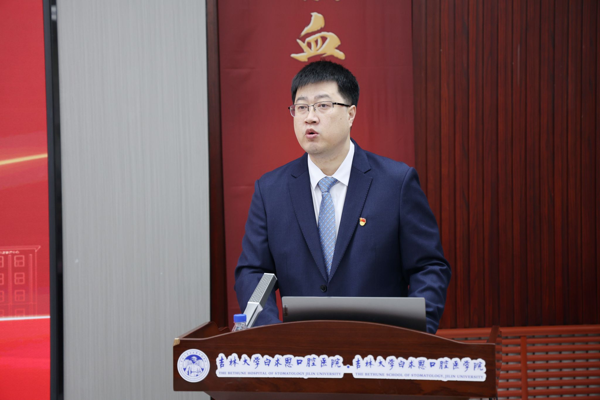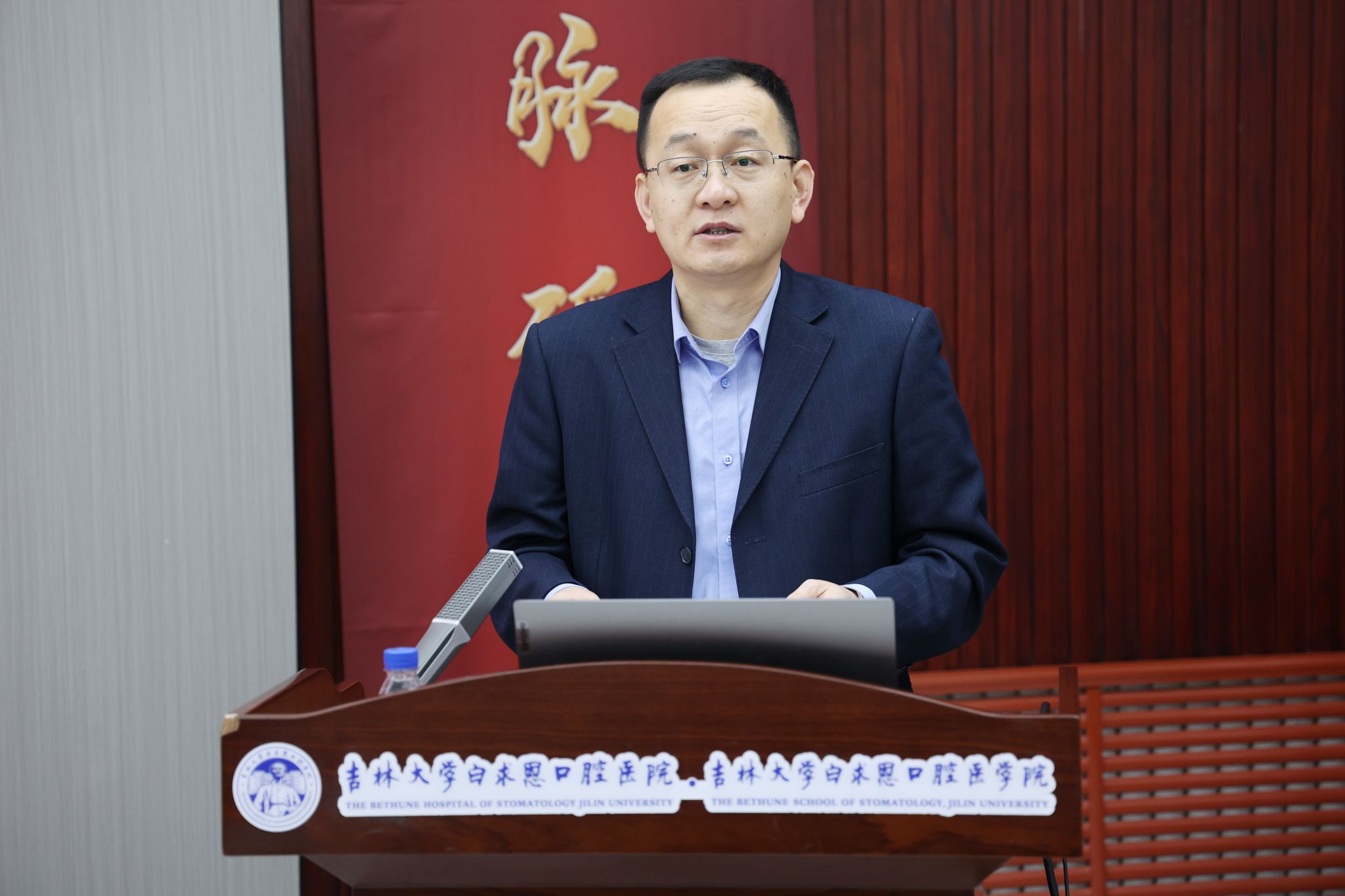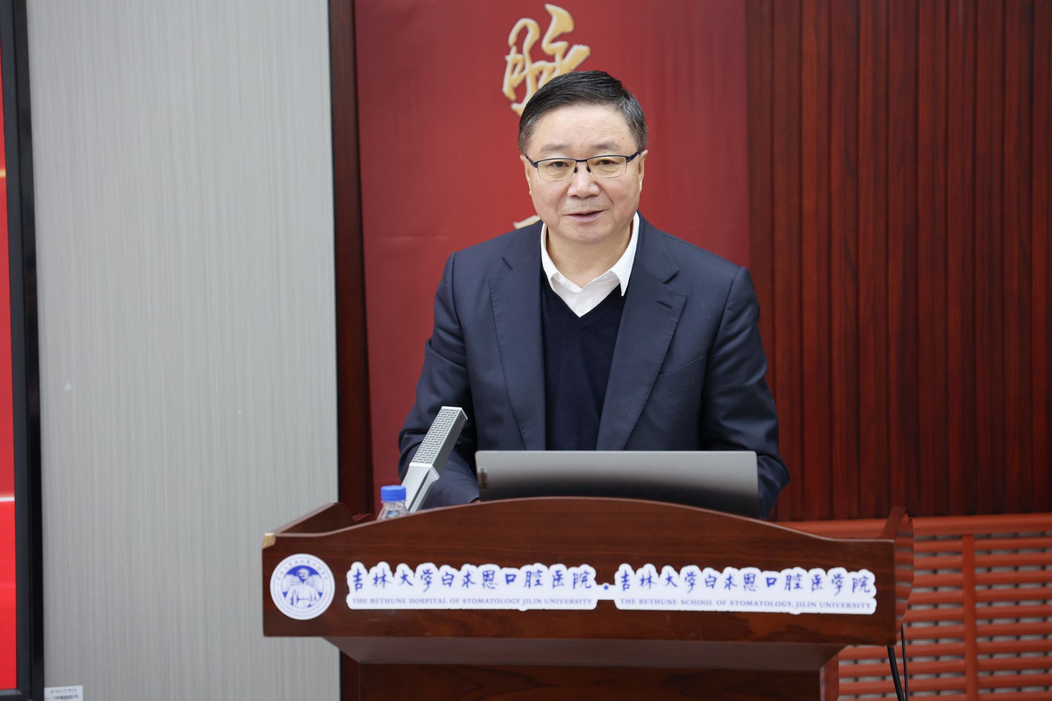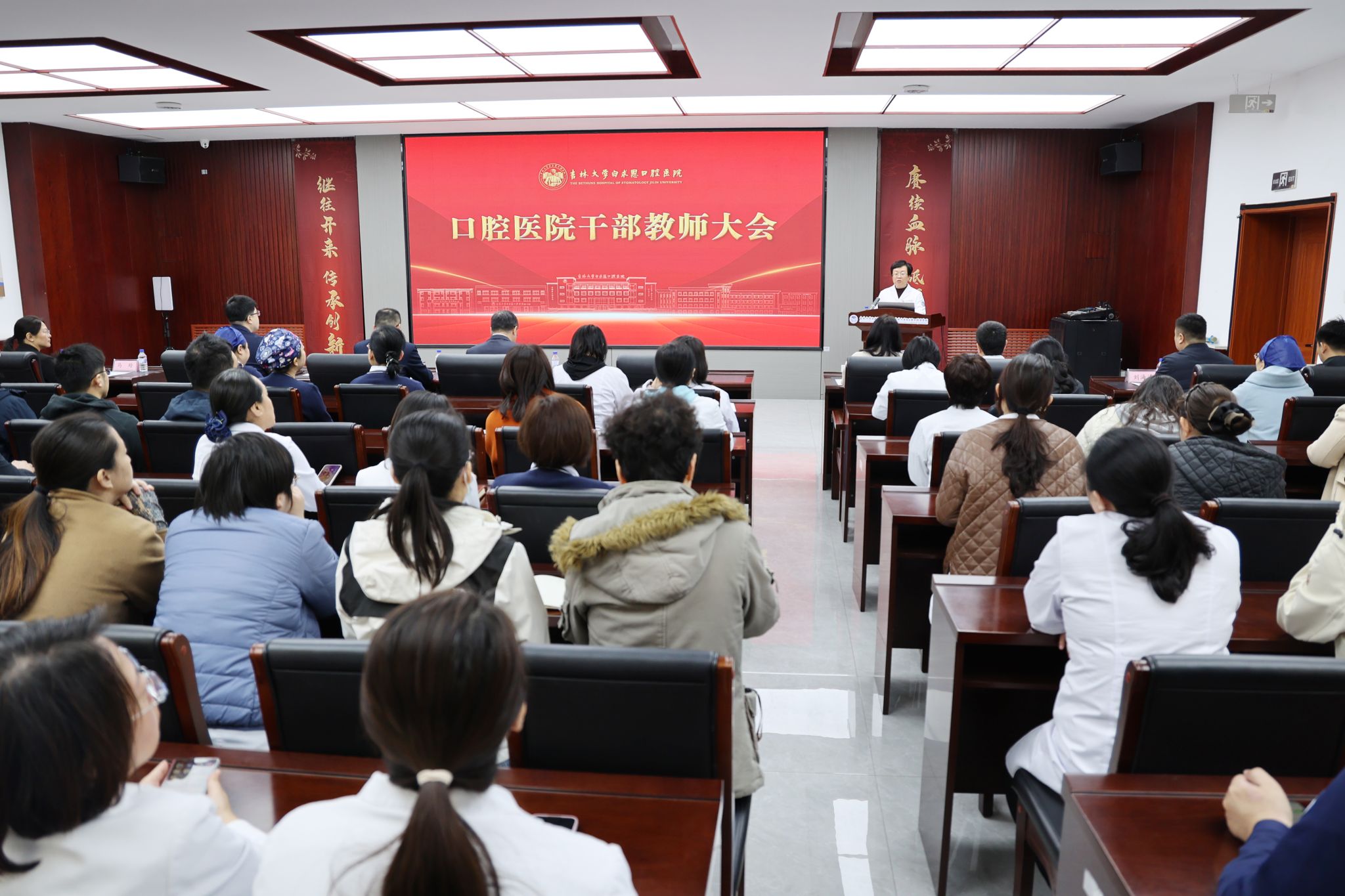 杨立志宣读学校党委任命文件:任命王林同志为口腔医院院长、白求恩口腔医学院院长,口腔医院党委副书记。