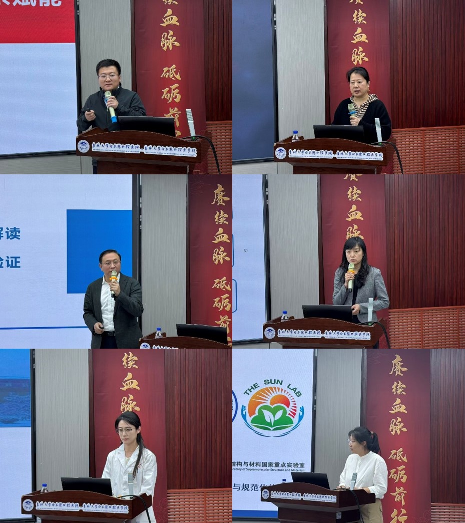 四位专家依次带来内容丰富、深入浅出的精彩报告。张学慧教授以《研发-评价-标准全链条服务体系赋能口腔材料创新转化》为题,梳理了口腔材料创新转化的全链服务体系;姚春丽教授以《皮肤肿瘤数据资源整合平台:产学研融合建设与实践》为题,展示了产学研融合建设与实践;刘岩峰处长以《吉林大学科技成果转化政策宣讲》为题,系统宣讲了吉林大学的支持方向与政策方针;王寿珍副处长以《医学专项概念验证申报及转化路径》为题,分享了项目申报操作规范和转化流程路径。同时,我院博士研究生张伟、郑适泽也结合自身研究课题进行了《用于口腔慢病无线实时监测和按需治疗的可穿戴智能诊疗一体化牙套》和《微环境仿生舌癌类肿瘤培养用复合生物材料》汇报。