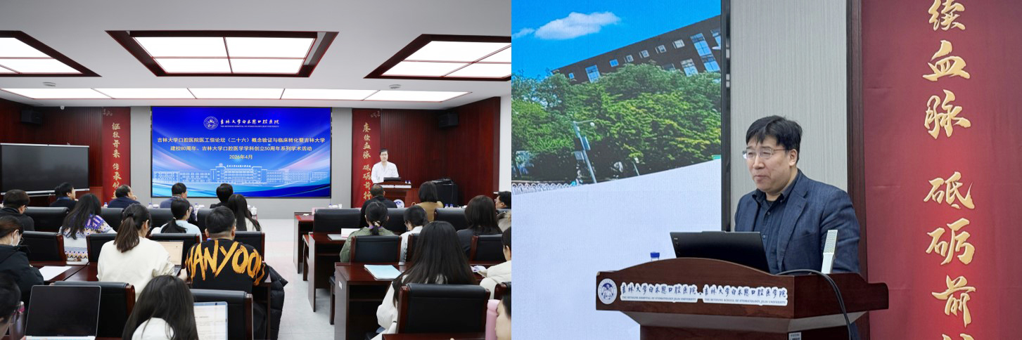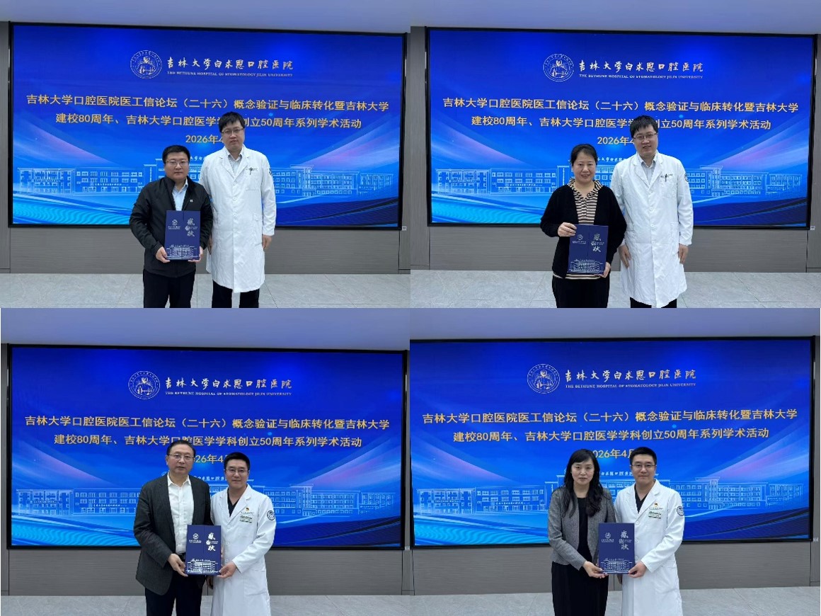 2026年是吉林大学建校80周年、我院学科创立50周年,4月7日,我院举办吉林大学口腔医院医工信论坛暨吉林大学建校80周年、我院学科创立50周年纪念系列学术活动。本次论坛以“概念验证与临床转化”为主题,特邀北京大学口腔医院张学慧教授,吉林大学第二医院姚春丽教授,吉林大学科研院副院长、科技开发办公室主任刘岩峰处长,吉林大学科研院科技开发办公室副主任王寿珍副处长四位嘉宾作主题报告,旨在搭建产学研深度融合交流平台,助推医院科技成果转化工作迈上新台阶。吉林大学口腔医院院长王林教授、副院长吴国民教授及院内师生代表出席本次论坛。论坛由吉林大学口腔医学研究所所长孙宏晨教授主持。