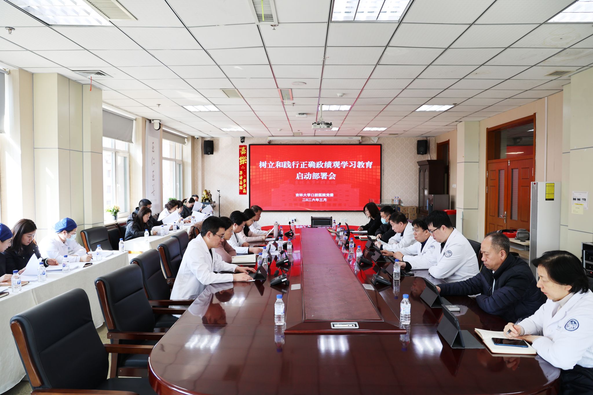 3月5日,我院召开党委会(扩大)会议,深入学习习近平总书记关于树立和践行正确政绩观的重要论述,传达学习中央党的建设工作领导小组会议精神,贯彻落实吉林大学树立和践行正确政绩观学习教育启动部署会会议精神,对医院开展树立和践行正确政绩观学习教育进行动员部署。党委书记胡敏主持会议并作动员讲话。
