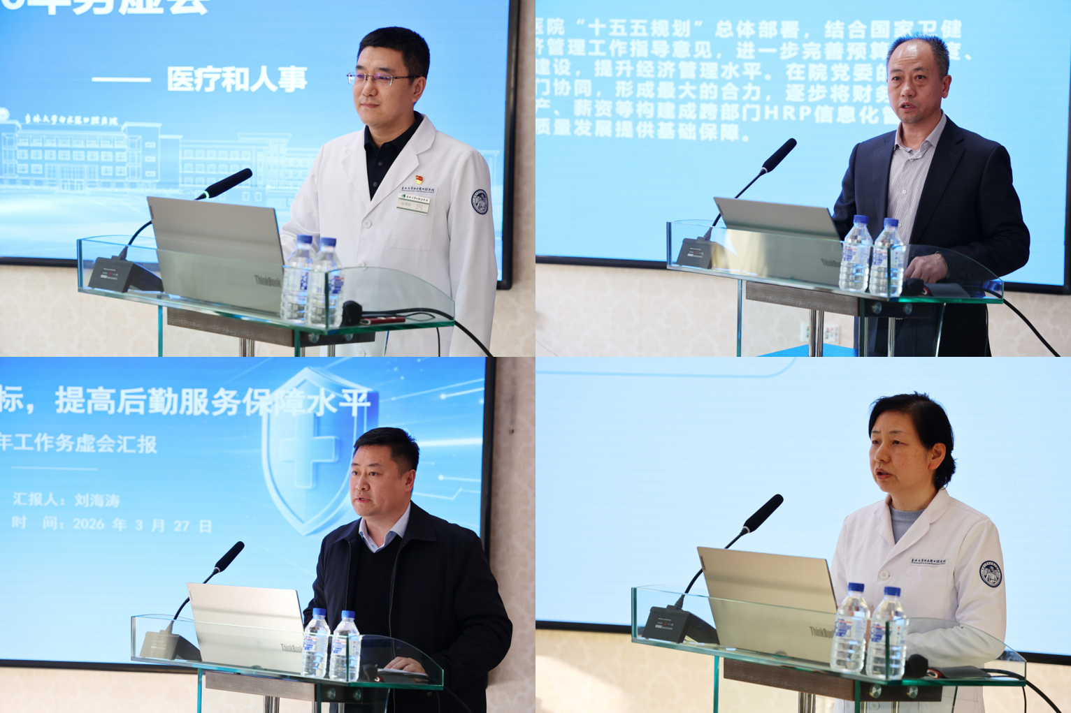 2026年3月27日下午,我院召开2026年工作务虚会。会议以“树立和践行正确政绩观,科学谋划,真抓实干,着力推动医院高质量发展”为主题,集思广益,凝聚共识,明晰发展路径,擘画发展蓝图。吉林大学党建工作联络员屈英和列席指导会议。医院全体领导班子成员参加会议。会议由党委书记胡敏召集并主持。
