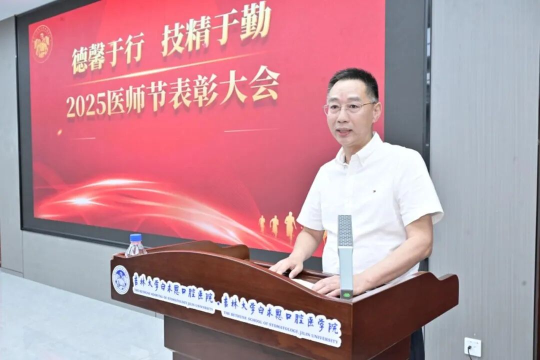 2025年8月19日是第八个中国医师节,为深入贯彻落实党的二十大和二十届三中全会精神,引领广大医务工作者继承和发扬红医精神、伟大抗疫精神,弘扬崇高职业精神,不断提升道德修养、增强服务能力,庆祝中国医师节,赓续光荣传统,践行初心使命,弘扬白求恩精神,19日下午,我院隆重举行2025年中国医师节庆祝表彰大会。吉林省卫生健康委员会副主任王国庆、医政处副处长王博,吉林大学白求恩医学部副学部长、医院管理处处长刘国栋,我院领导、获奖医师、临床医技科室主任、护士长、新入职医师代表等60余人出席了表彰大会。大会由副院长吴国民主持。