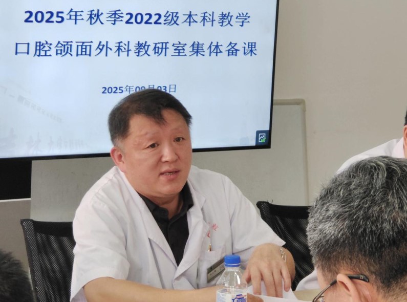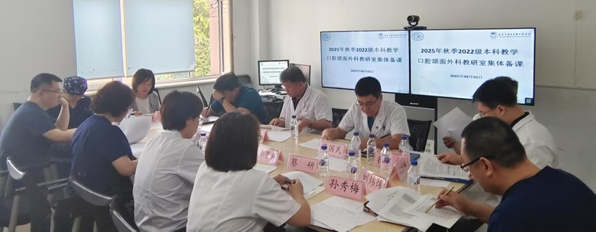 金秋九月,正是育人谋新时。为深化医学教育教学改革,推动2022版人才培养方案落地见效,我院口腔颌面外科教研室于近期组织召开了2025年秋季学期融合课集体备课会。教学副院长刘志辉、口腔病理教研室孙宏晨教授、教学部主任乔春燕、口腔颌面外三科主任刘麒麟等教学管理骨干,联合口腔颌面外科融合课各模块负责人,以及上学期融合课优秀经验传承者——牙体牙髓病学教研室主任孟秀萍、口腔病理学教研室主任史册,共赴一场“跨学科、共成长”的教学智慧之约。