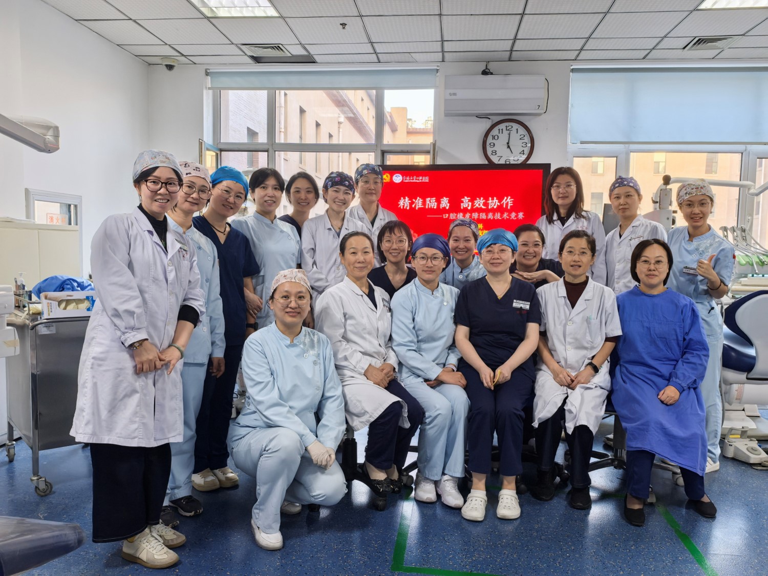 近日我院牙体牙髓科医护团队开展了一场以“精准隔离,高效协作”为主题的医护橡皮障竞赛,以实操竞技的方式展现橡皮障技术在诊疗中的专业价值,用默契配合诠释科室医疗服务的高效与精准。