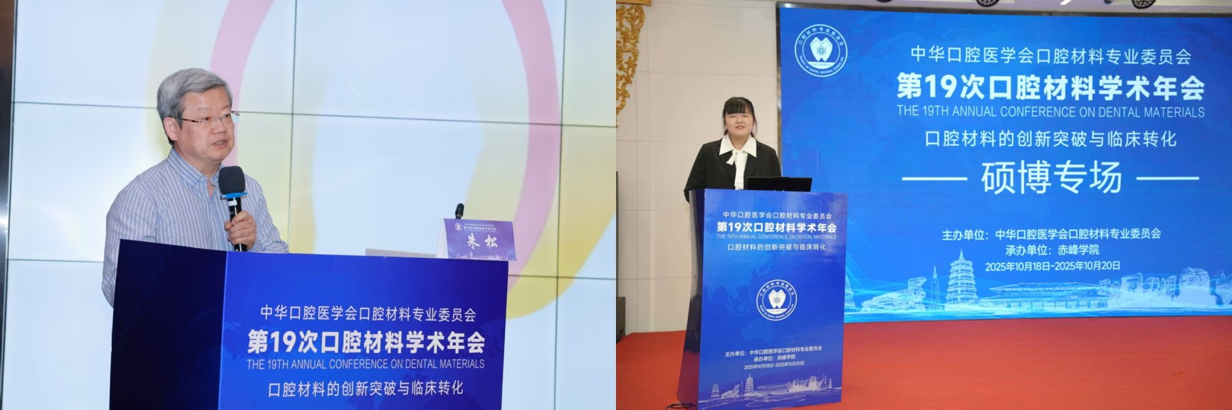 2025年10月18日至20日,第19次口腔材料学术年会在内蒙古赤峰市成功举行。本次会议由中华口腔医学会口腔材料专业委员会主办、赤峰学院承办,以“口腔材料的创新突破与临床转化”为主题,汇聚了国内材料学领域的众多专家学者。与会代表聚焦新形势下口腔材料的发展前沿,深入交流研究进展,共同为推动我国口腔材料学的高质量发展注入新动力。我院师生代表也积极参与了大会多项学术交流活动。