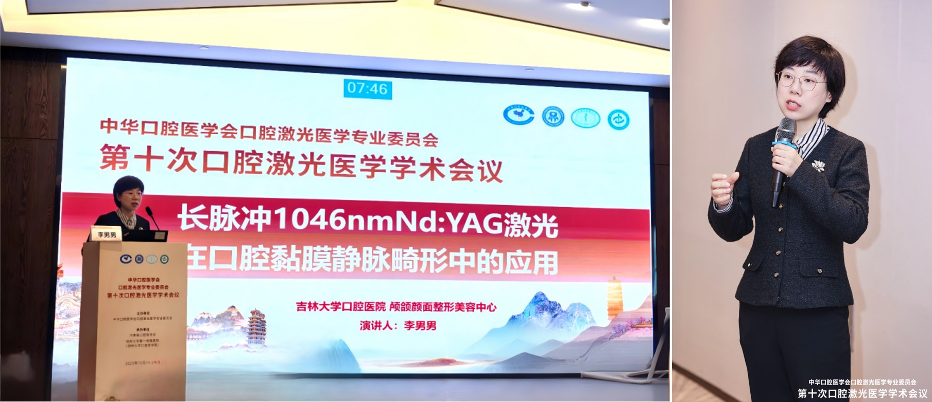 2025年10月26日,我院颅颌颜面整形美容中心李男男副教授在中华口腔医学会第10次全国口腔激光医学学术会议上,分享了长脉冲 1046nmNd:YAG 激光治疗口腔黏膜静脉畸形的临床成果,通过多例典型病例清晰展示了该技术的精准疗效,会议现场讨论热烈。这标志着我院应用口腔激光治疗静脉畸形领域迈出重要一步,口腔激光医学临床水平得到进一步提升。