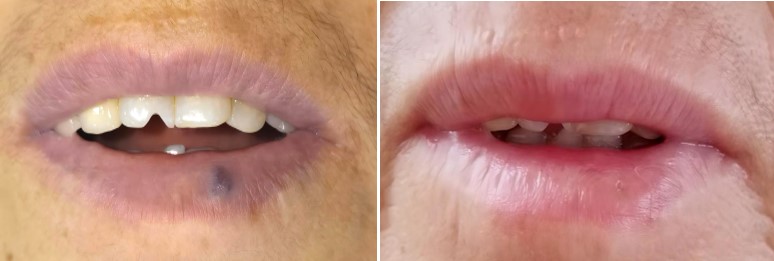 病例3 下唇静脉畸形(一次治疗)
