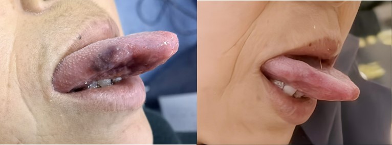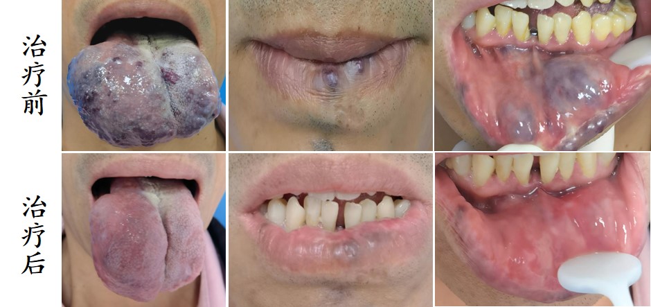 病例1 舌、下唇多发静脉畸形(两次治疗)