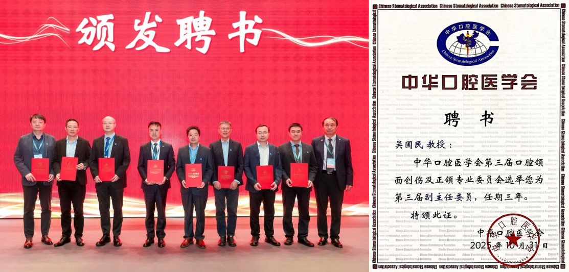 吴国民教授长期致力于正颌外科的临床诊疗、科研创新与学科建设,在推动我国正颌外科技术进步、临床规范化及青年医师培养方面成绩斐然。本次他当选副主任委员,既是个人学术成就的体现,也是对我院口腔正颌外科团队科研水平与学术影响的肯定。